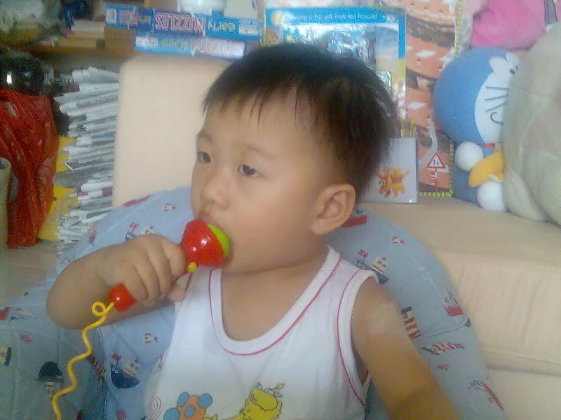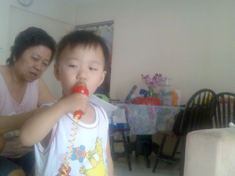 Opened up one of his birthday present which is a electronic organ with a microphone and Gavin is real interested in the microphone. The next Project Superstar or Singapore Idol, perhaps?