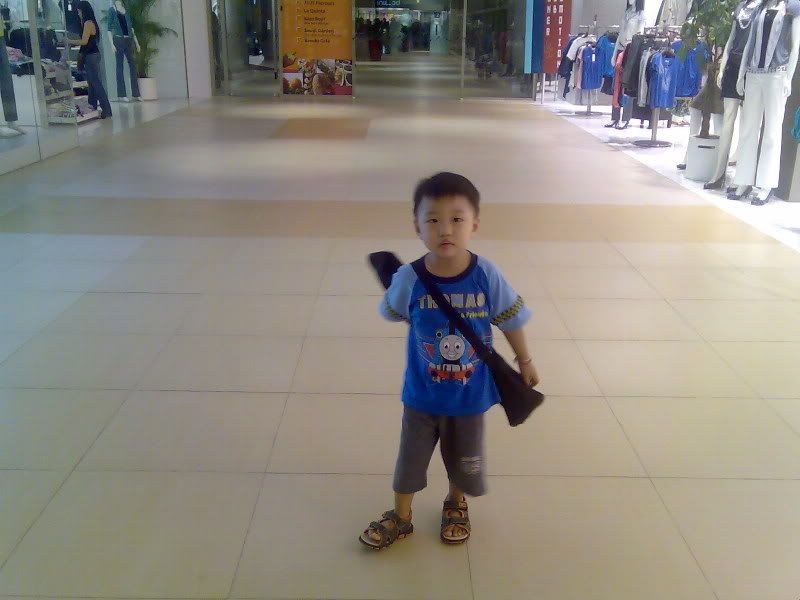 To day is the NDP's Preview so we went to Marina Square to catch the fireworks. Gavin has been bugging everyone to take him to see the fireworks since he last saw it 2 weeks ago...Anyway, Peng Yi-Yi wanted to go and take the photos and Daddy has to work (he's involved in the NDP) so Gavin boy, Po-Po and Mummy decided to tack along. The moment we reached the shopping mall, Mummy went to book a table at the MOF so that we could see the fireworks while we have dinner. Luckily we are regulars at the restaurant so they gave special allowance for us to book a table..*laugh*
